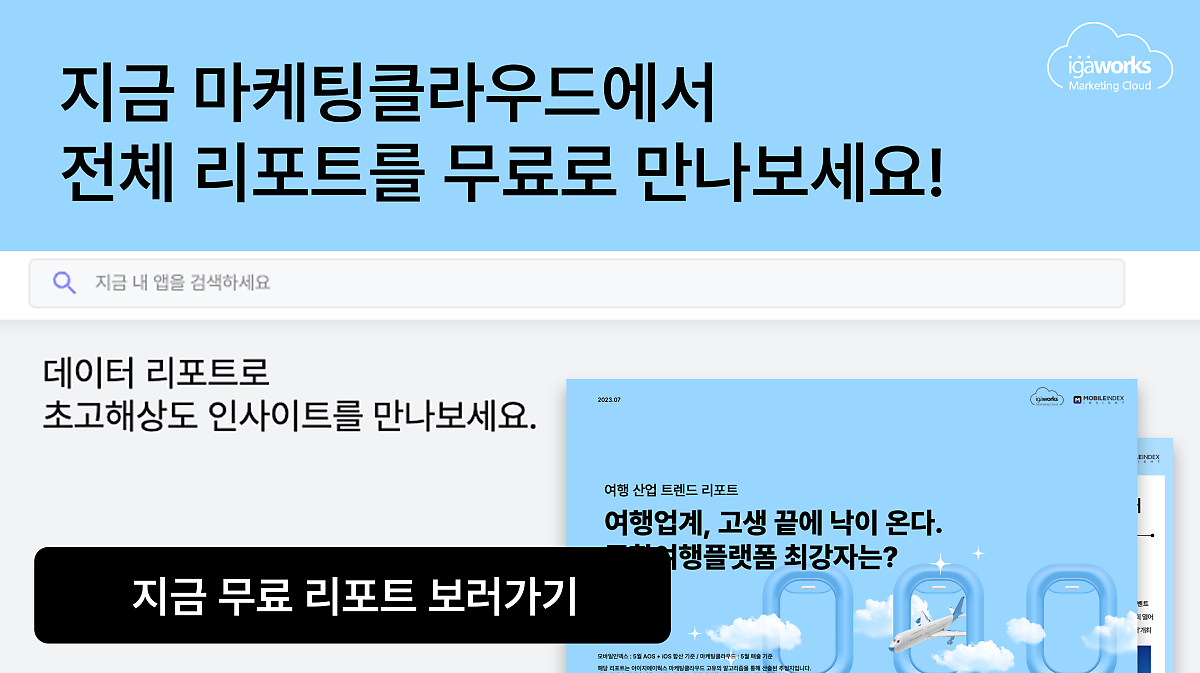마케팅클라우드 리포트는 아이지에이웍스(www.igaworks.com)의 모바일 마켓 인텔리전스 플랫폼