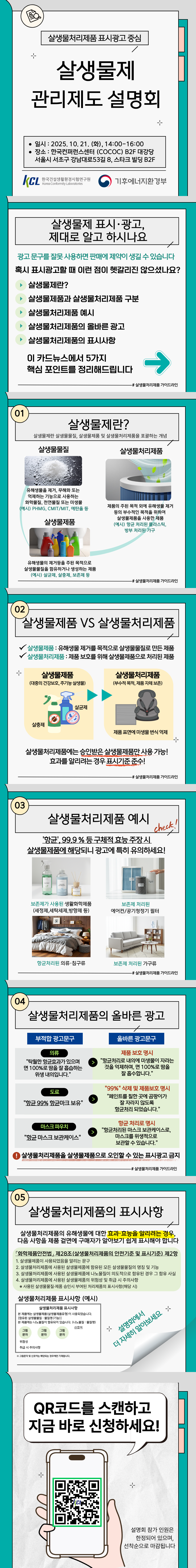 2. 주요내용 : 살생물제품(살균제, 살충제, 기피제 등)으로 오인될 수 있는 살생물처리제품의 광고·표시 관련 가이드라인 설명