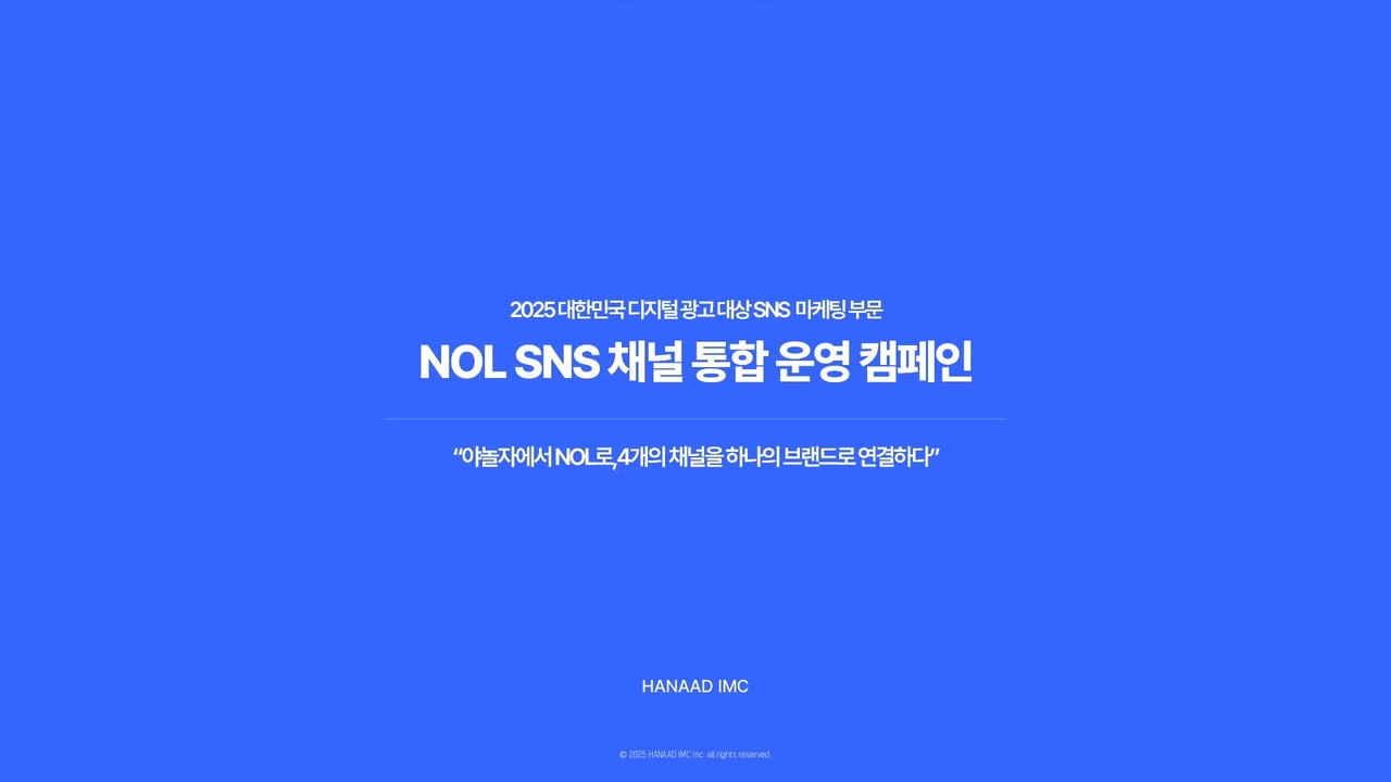 | 금상 | 하나애드아이엠씨 | 놀유니버스(NOL) | NOL SNS 채널 통합 운영 캠페인 | ||