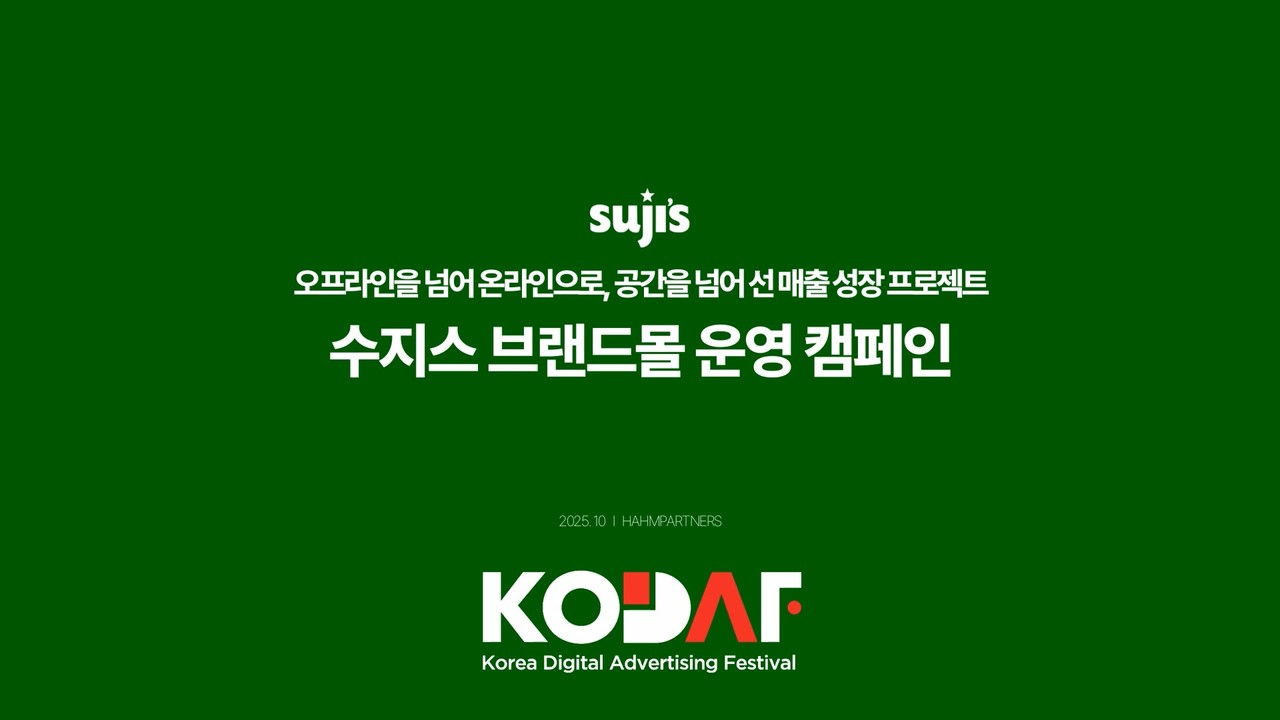 | 은상 | 함파트너스 | 엄지식품 수지스 | 수지스 브랜드몰 운영 캠페인 | ||
