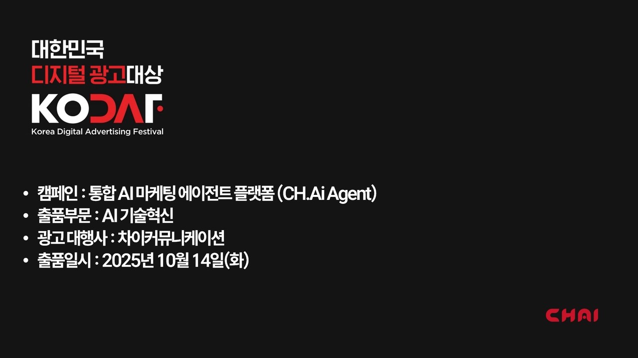 | AI기술혁신 | 대상 | 차이커뮤니케이션 | - | 통합 AI 마케팅 에이전트 플랫폼 CH.AI Agent | |