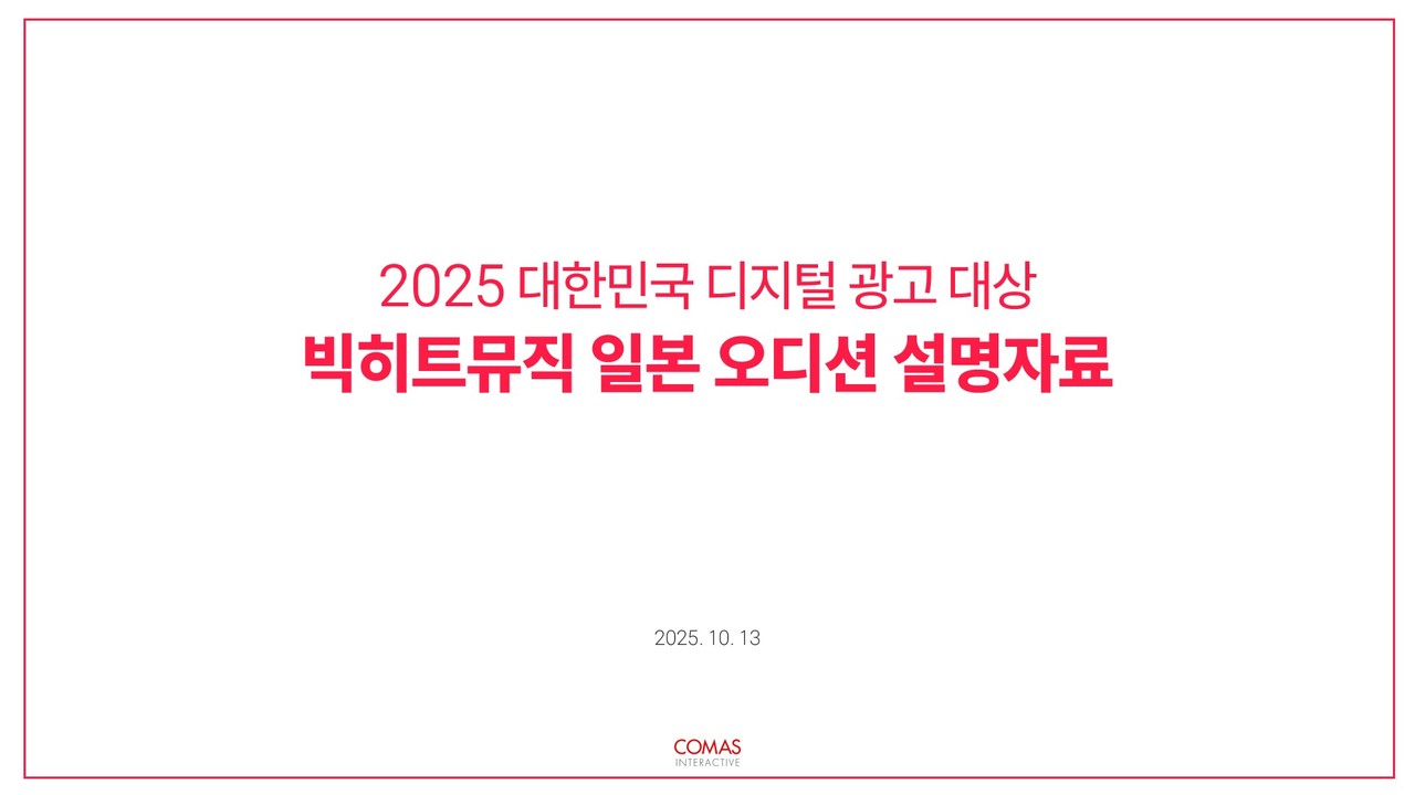 | 동상 | 코마스인터렉티브 | 하이브 | 2025 빅히트뮤직 일본 오디션 | ||